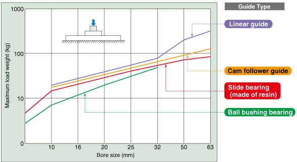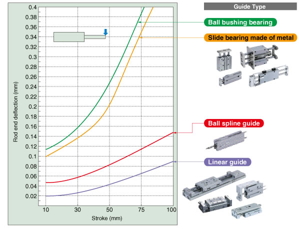 A performance comparison of cylinders with different types of mounting guides is shown below.