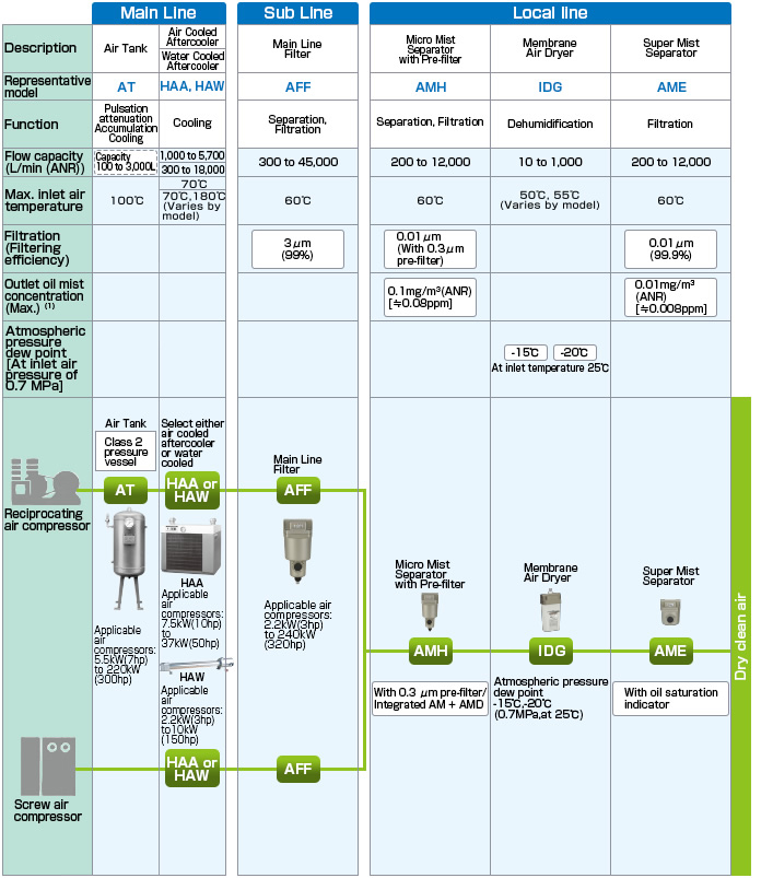 Note 1) When the inlet oil mist density (compressed air density) is approximately 30 mg/m3 (ANR) or less.