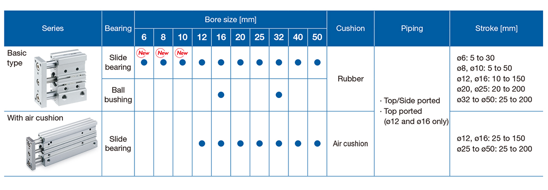・Bore sizes ø6, ø8, and ø10 have been added. They can also be used as