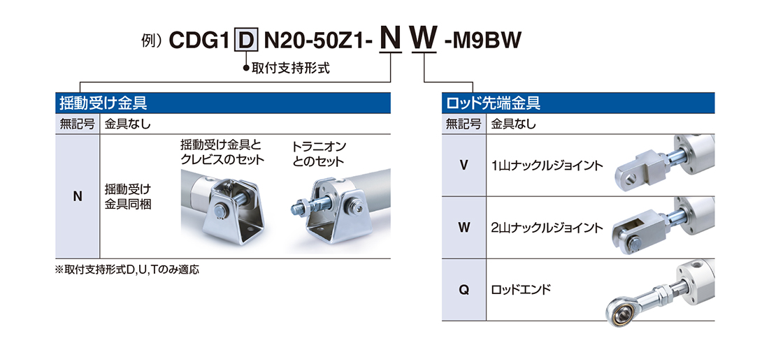 | 標準形 | CG1-Z1 | 複動片ロッド | 20,25,32,40,50,63,80,100 |