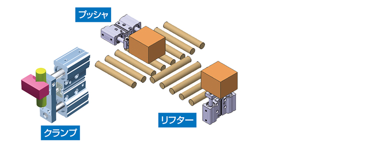・プッシャ、リフター、クランプ等に適したシリンダ