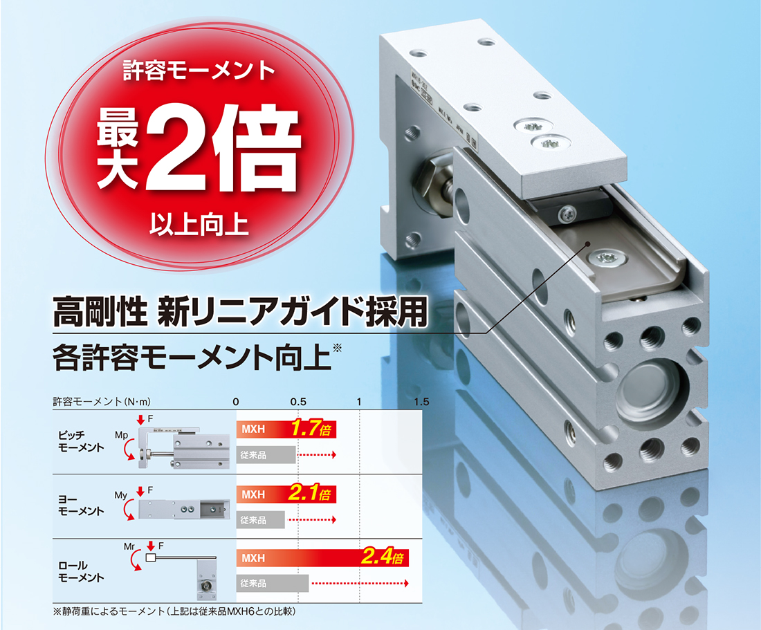 ・高剛性 新リニアガイド、ピストン部変更により質量削減