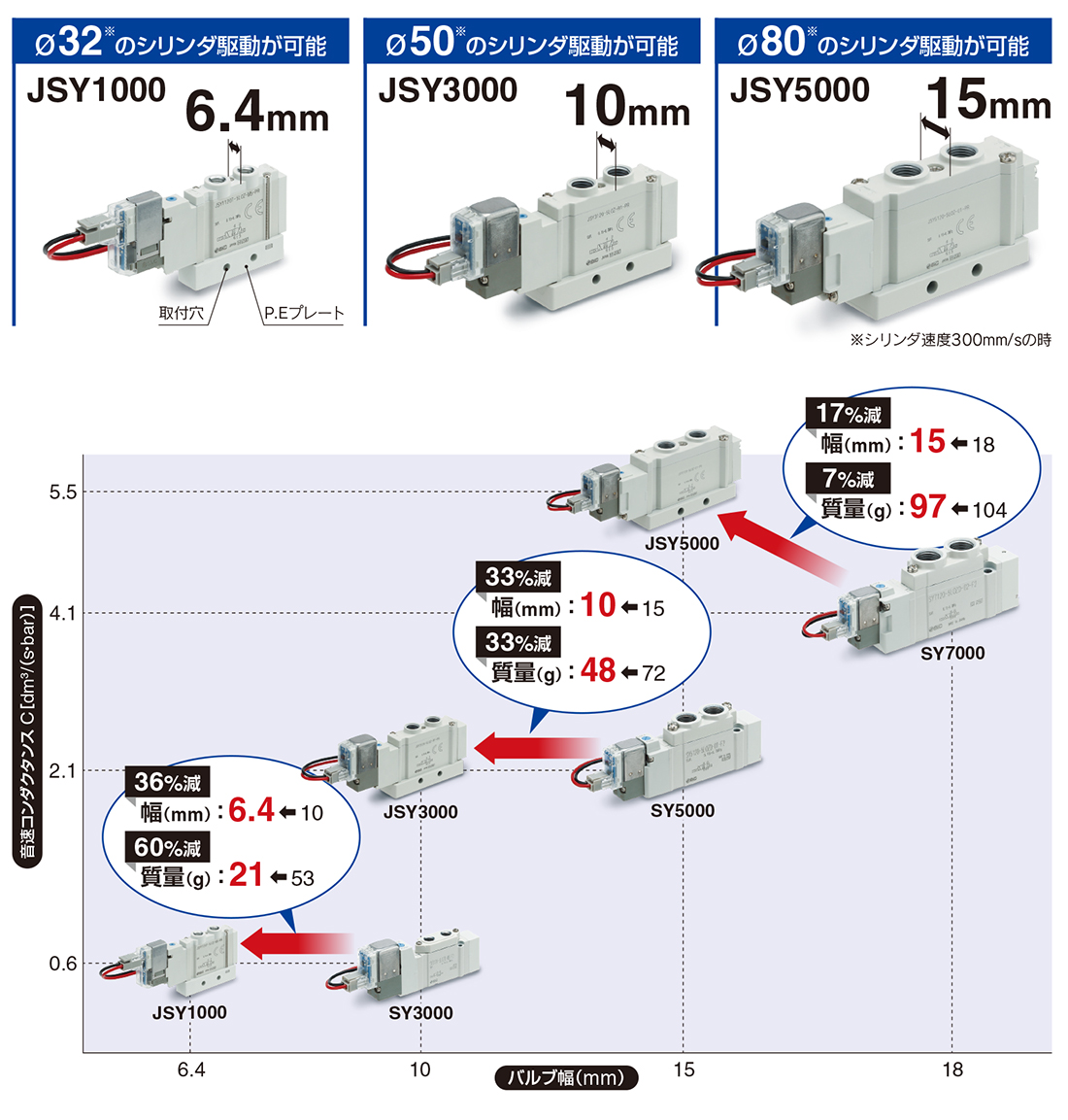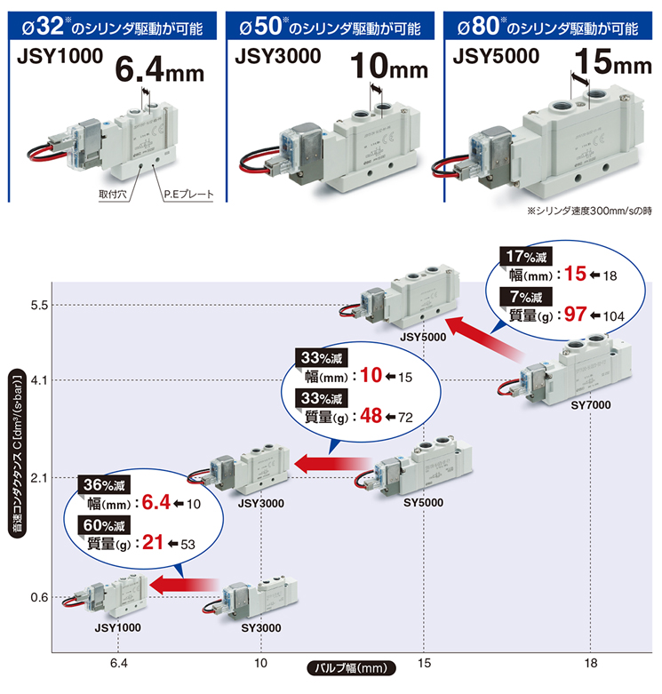 コンパクト5ポートソレノイドバルブ ノンプラグイン直接配管 JSY1000/3000/5000