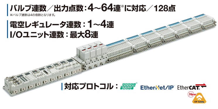 バルブ連数/出力点数:4~64連※に対応/128点