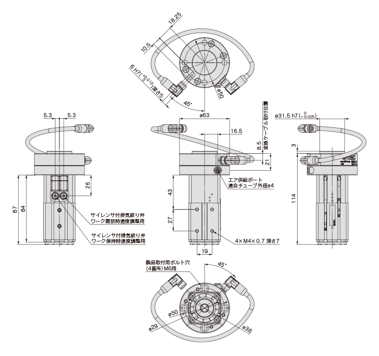 ・エア供給チューブ1本、電気配線M8コネクタを接続するだけで動作可能