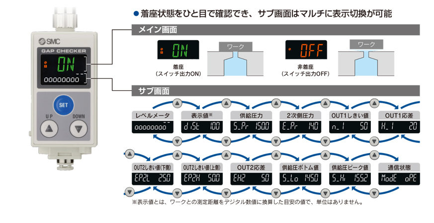 表示値だけでなく、検出に影響を与える圧力値(供給圧力、2次側圧力)の状態をリアルタイムに伝達可能!