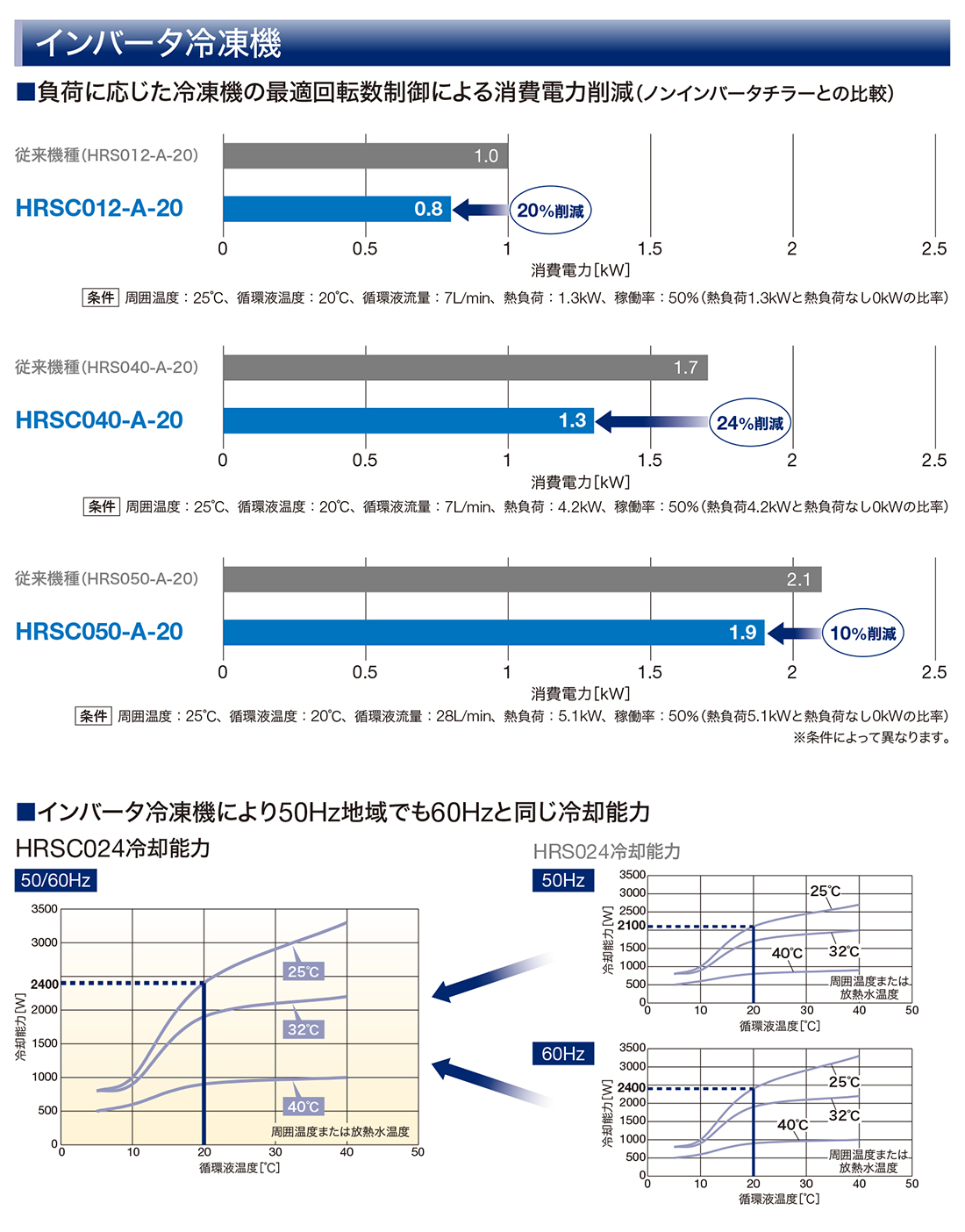 シリーズ 冷却能力 検索結果を表示 HRSC012〜060 1.3kW~5.9kW 検索結果を表示 HRSC090 9.5kW,11kW 検索結果を表示 HRSC100 10.5kW,11.5kW 検索結果を表示