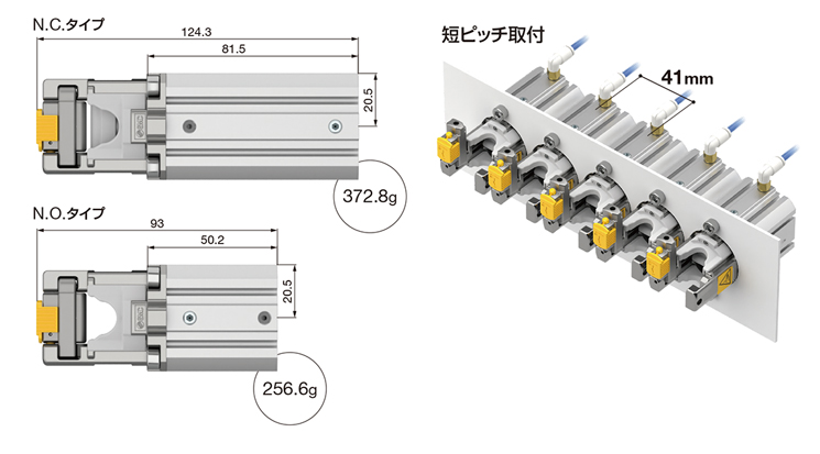 ON/OFF確認用オートスイッチボディ4面に取付可能