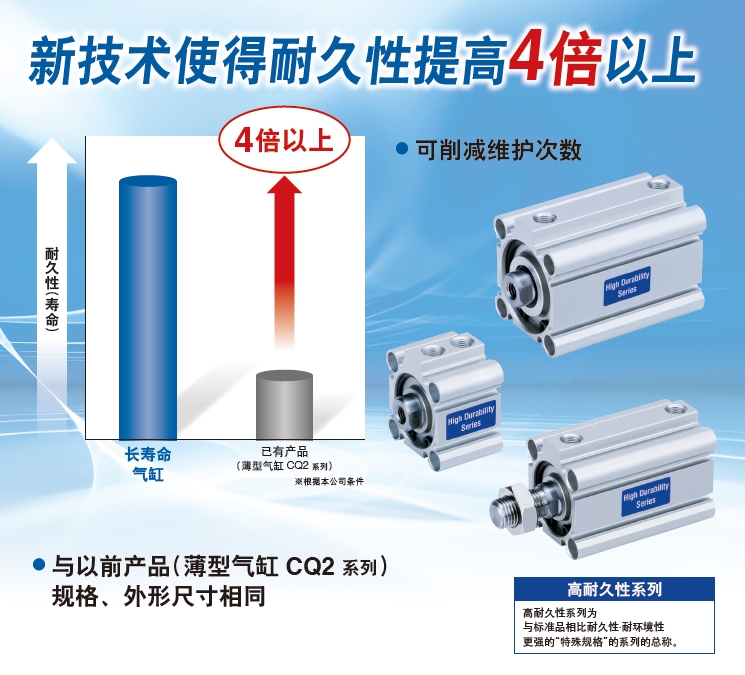 ・规格、外形尺寸与以前产品(薄型气缸CQ2系列)相同