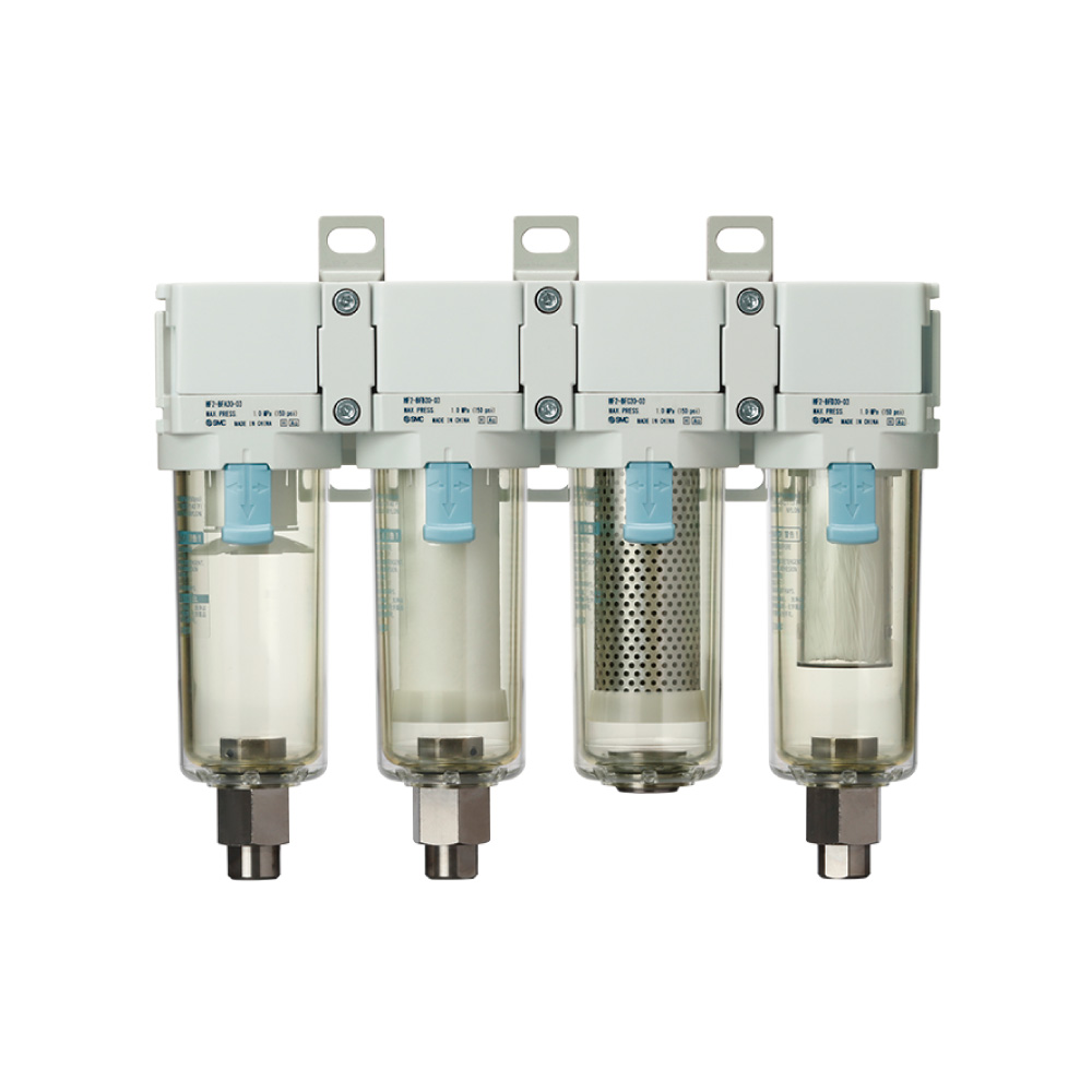 主管路过滤器AFF系列可滤除液体及固体杂质,无需再设置水滴分离器(AMG系列),既节省空间又减少了配管工时。