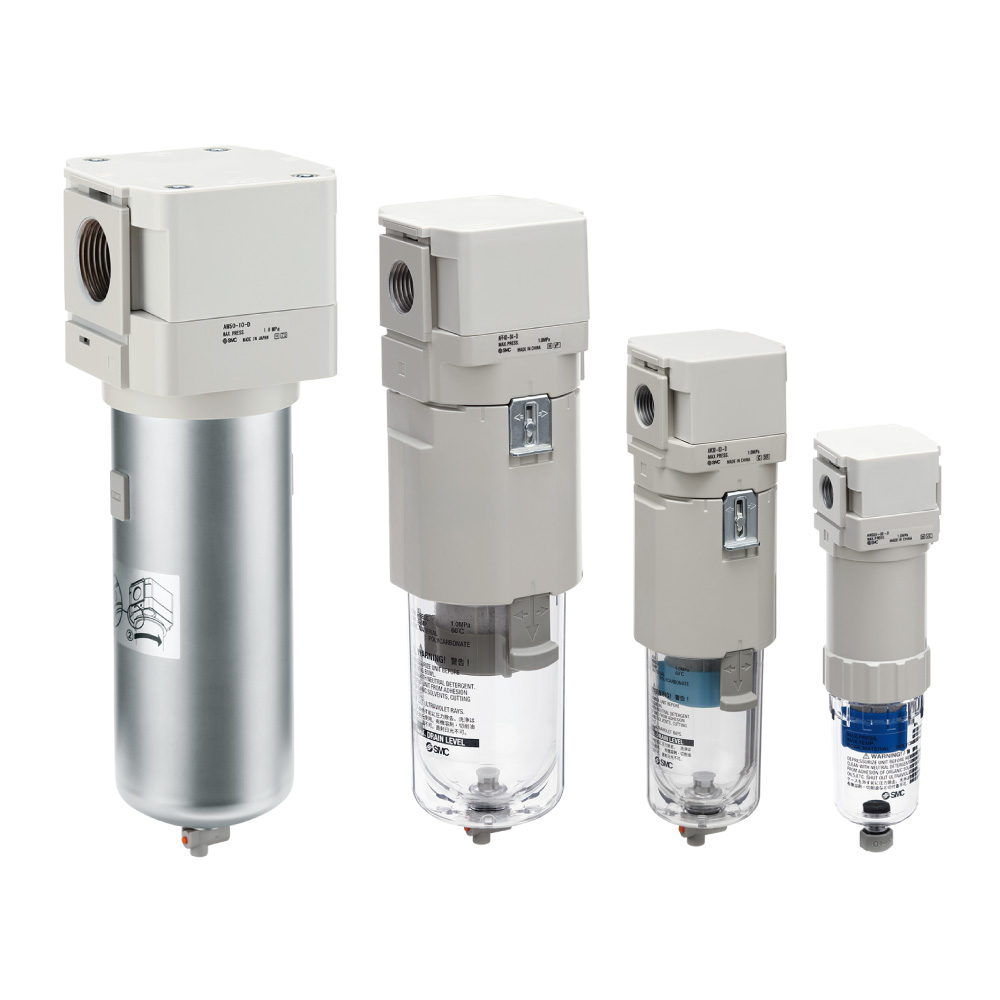 | 带预过滤器的微雾分离器 | AMH | 0.01(捕捉效率99.9%) | 0.1(≒0.08ppm)以下 | 750~1500 | 1/8, 1/4, 3/8, 1/2, 3/4, 1 |
