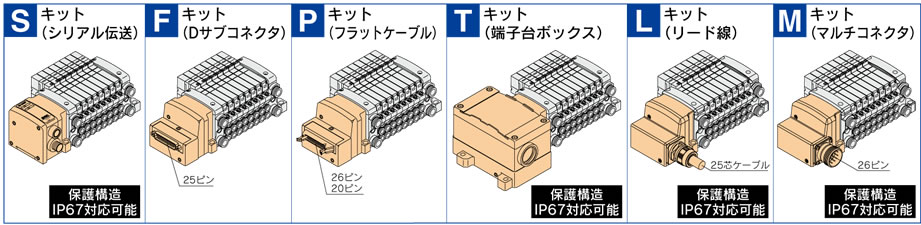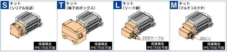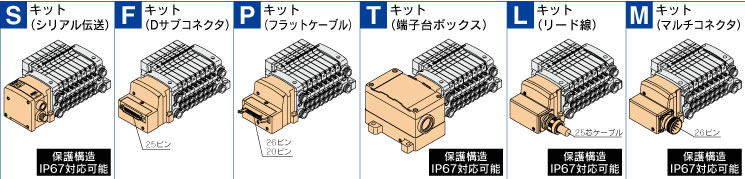 オートスイッチ/圧力スイッチ/フロースイッチなどの入力 機器を接続するユニットや、電磁弁/リレー/表示灯などの 出力機器を接続するユニットが、順不同で連結可能です。 注)SIユニットを除く