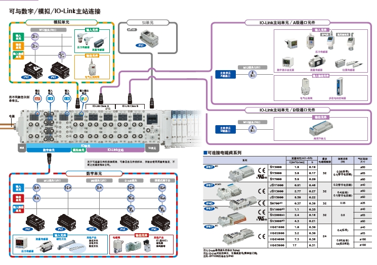 | EX600 | IP67 | PROFIBUS DP DeviceNet™ CC-Link EtherNet/IP™ EtherCAT PROFINET Ethernet POWERLINK(订制规格) Modbus TCP(订制规格) CC-Link IE Field(订制规格) | SY3000,5000,7000(插入式) JSY1000,3000,5000 SV1000,2000,3000 VQC1000,2000,4000,5000 S0700(IP40) |
