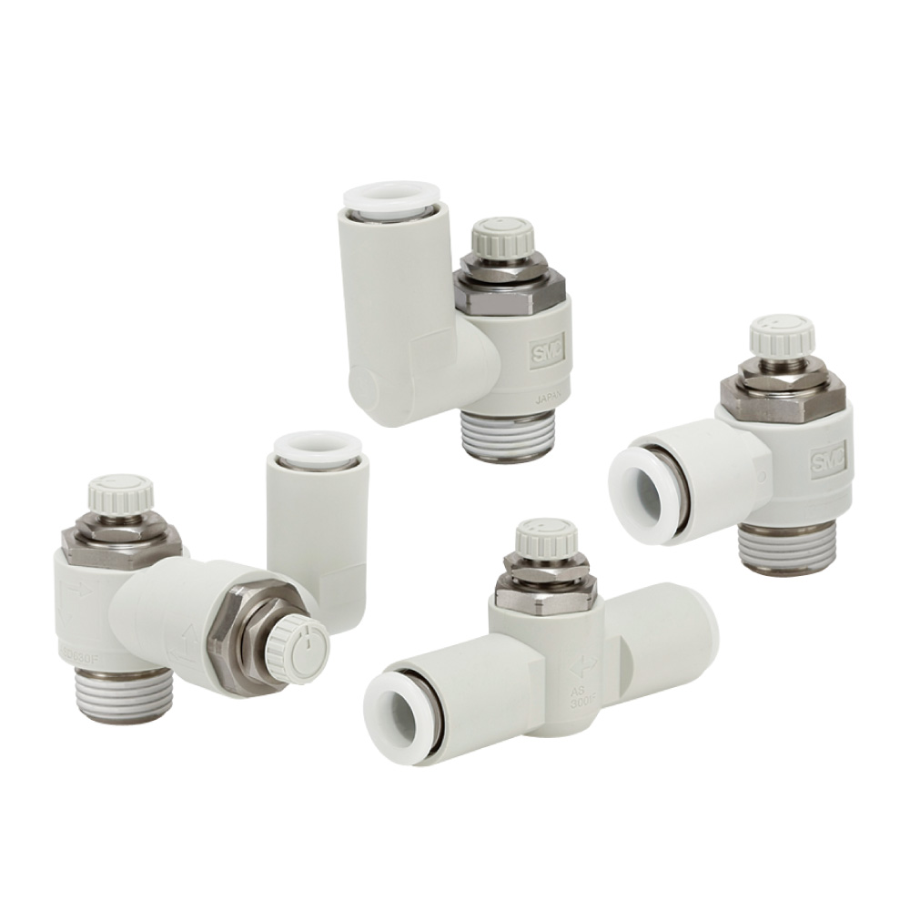 | 带快换管接头 双向速度控制阀 | ASD□□□FG 双向速度控制阀 | M5~1/2 | φ3.2~φ12 | φ1/8''~φ1/2'' |